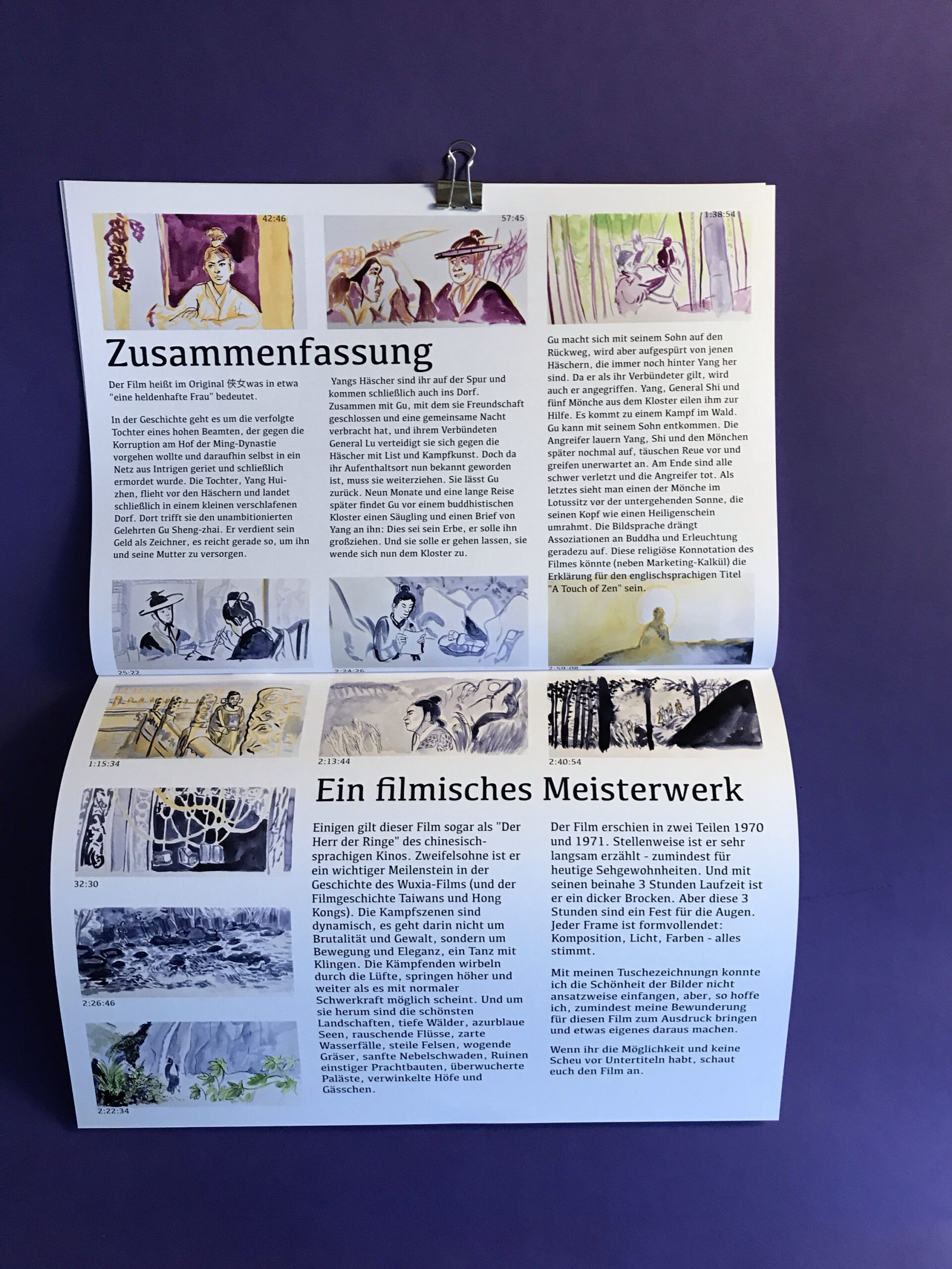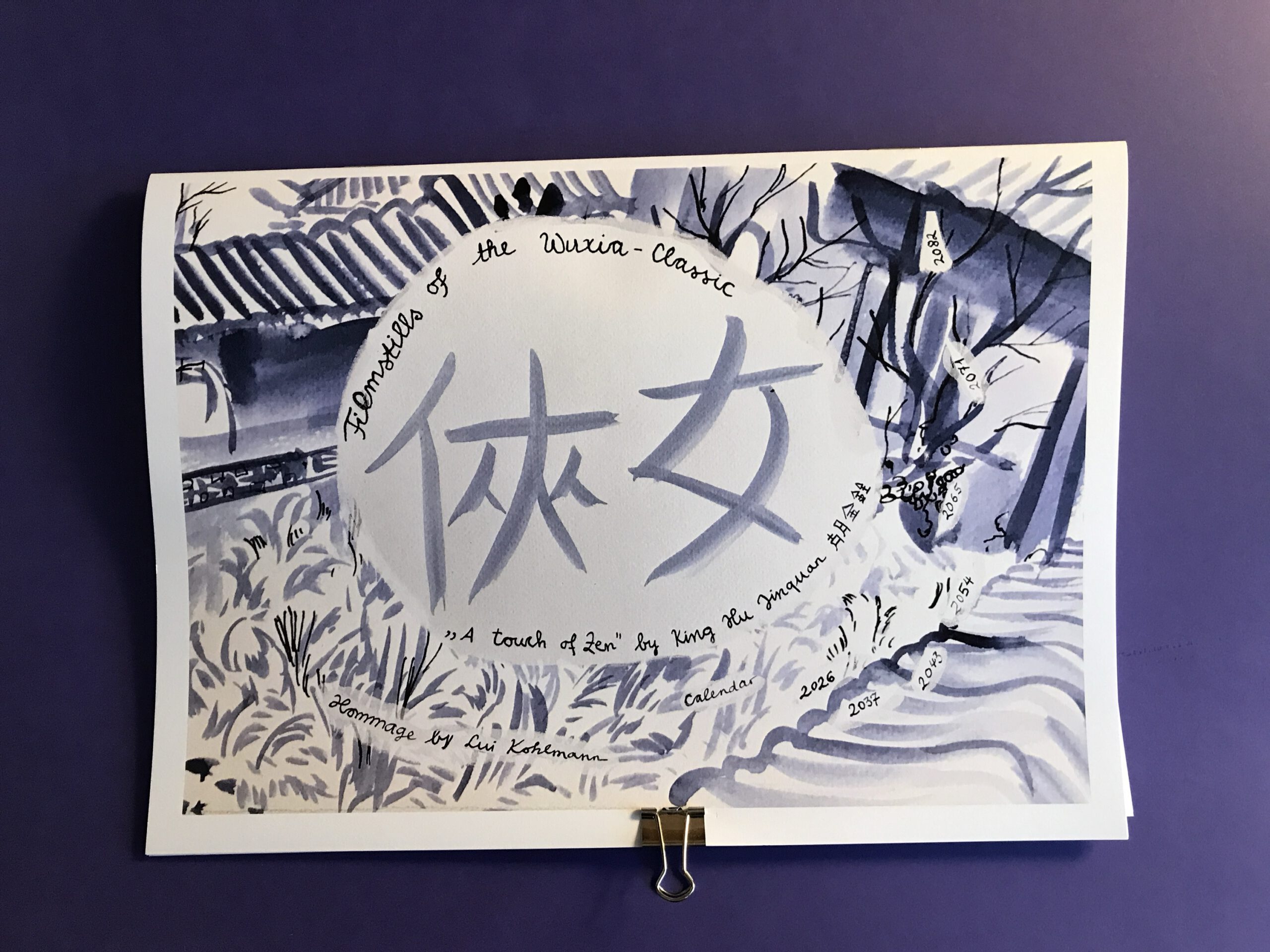 Jeden Monat gibt es eine Zeichnung von einem Filmstill des Wuxia-Klassikers „A Touch of Zen“ (1970/71).