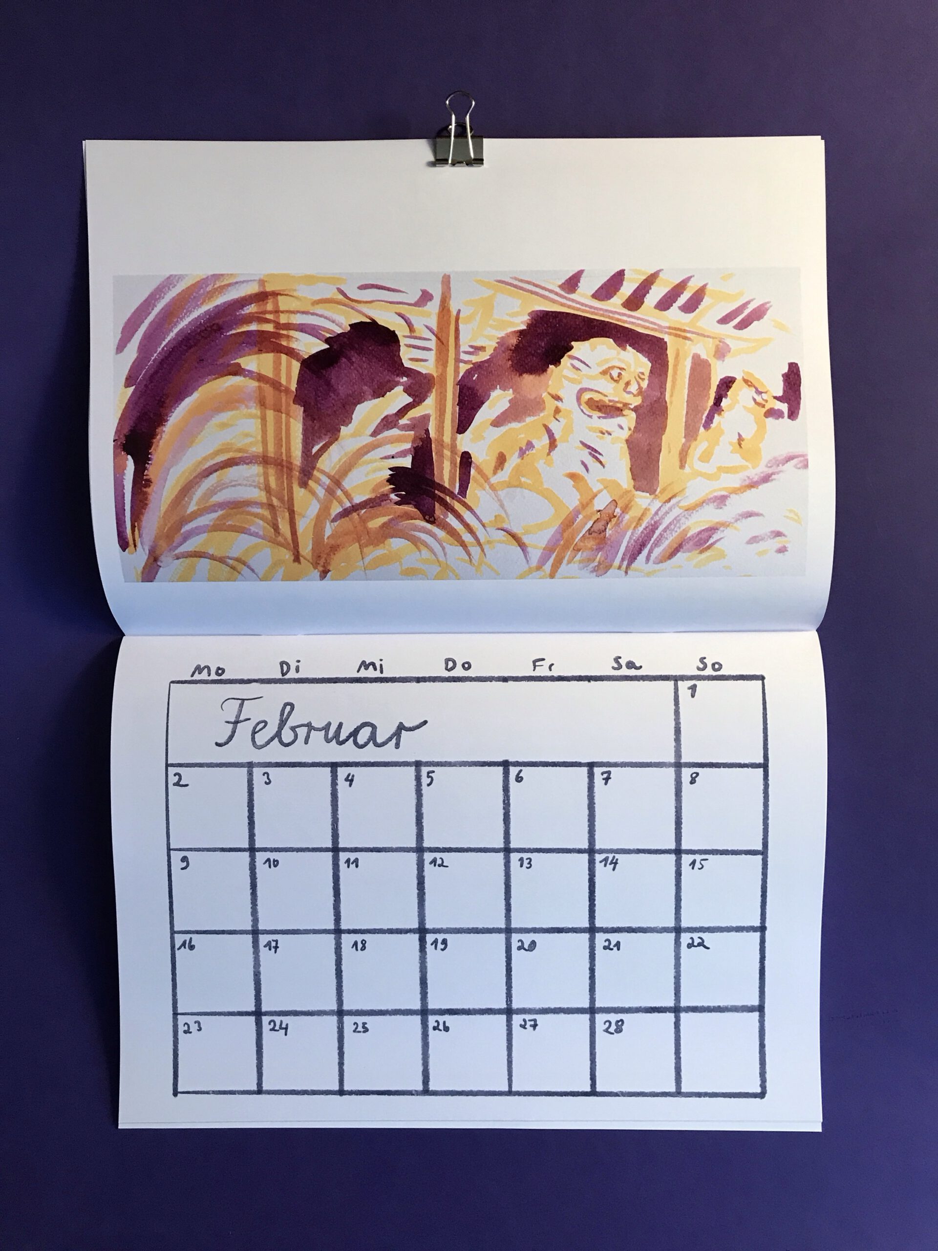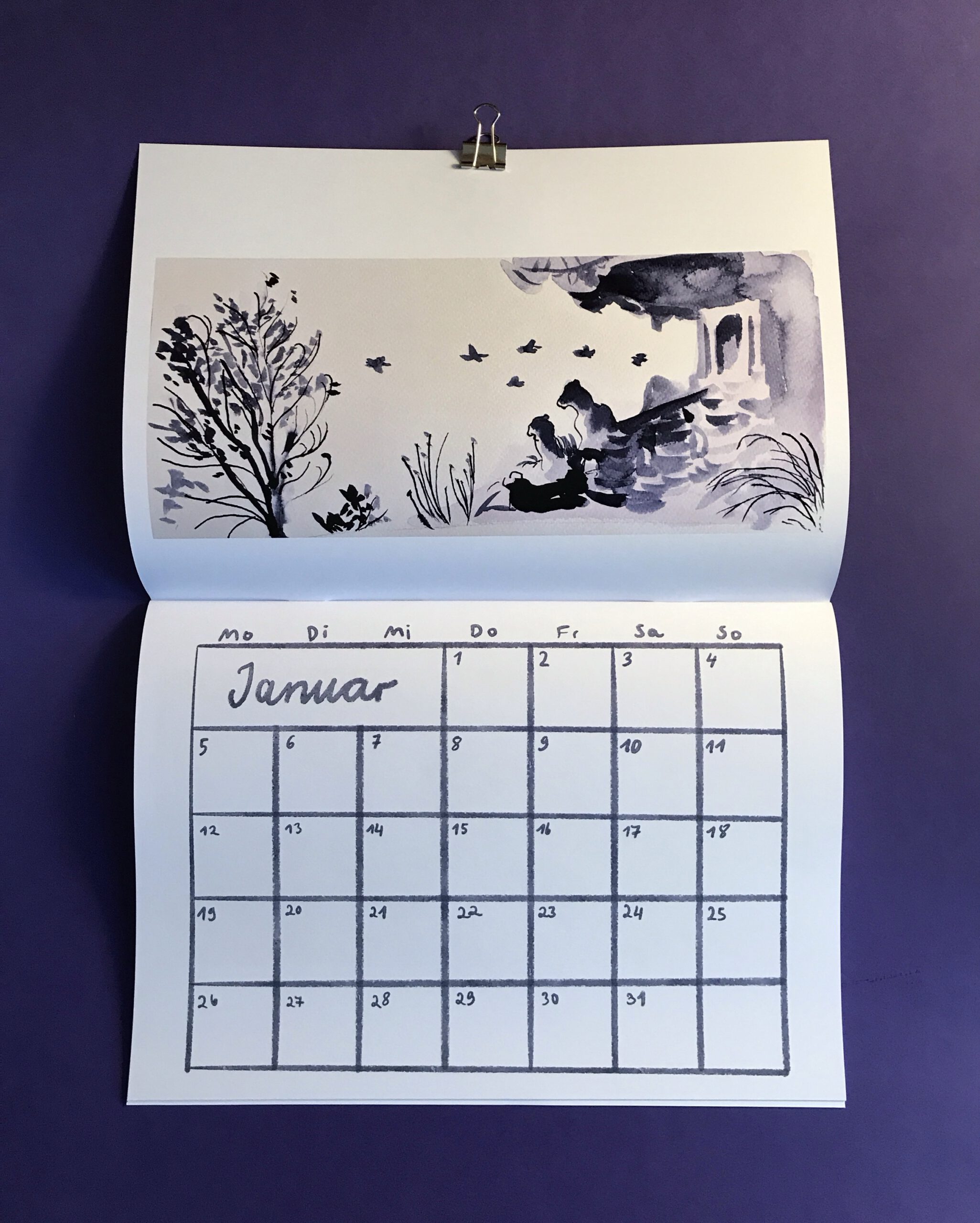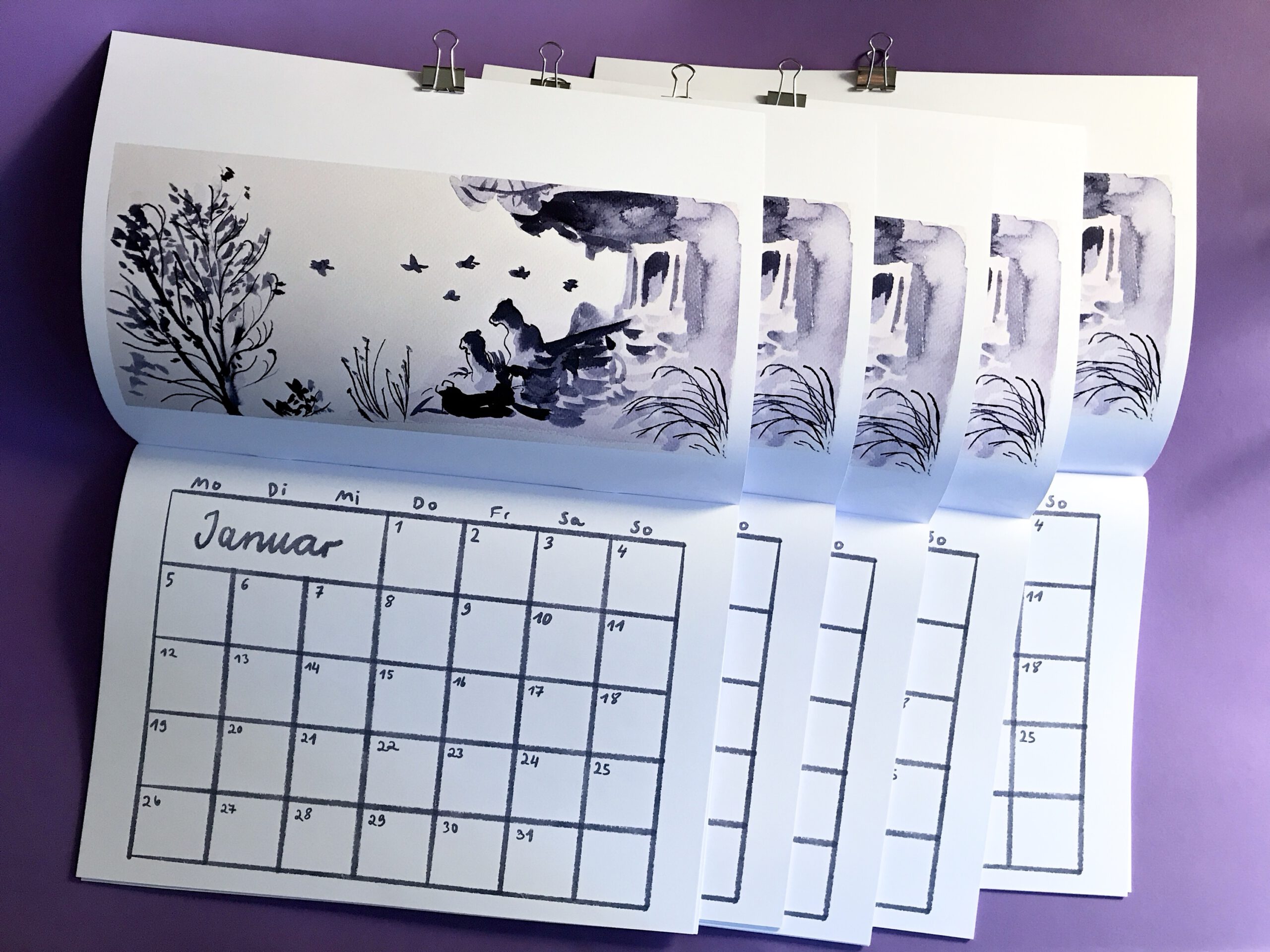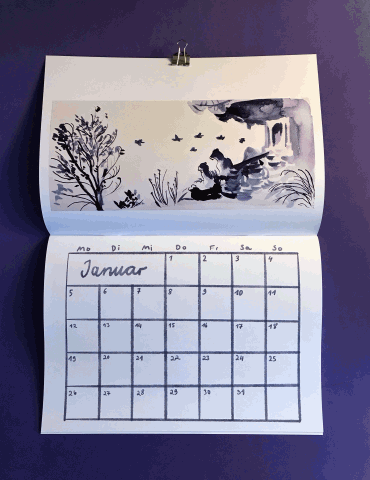 Im Lieferumfang mit inbegriffen ist eine Maulklammer zum Aufhängen des Kalenders. Die Farbe der Maulklammer kann abweichen.